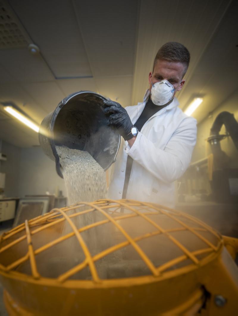 The concrete and aggregates laboratory has equipment for testing everything from clay to rock, both for building on and for testing whether the masses can be used as aggregates in concrete, asphalt, road, dam and railway construction. We also perform all types of tests on fresh and hardened concrete as well as grout and shotcrete. Our students have lab exercises where they carry out most of our tests and we assist in connection with assignments and research.