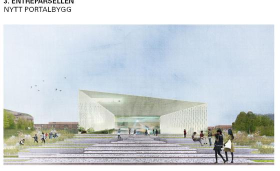 | Hvordan skal inngangen til UiT være? Et av mange forslag til hvordan et portalbygg kan se ut. Bildet er fra Breivika 2033, en mulighetsstudie som er utarbeidet av Elisabeth Schjelderup Berntsen. |