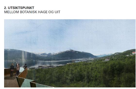 –En måte å knytte UiT til sentrum kan være et utsiktstårn som står i botanisk hage. Her vil en kunne se ut over byen og bygget vil være synlig fra sentrum.