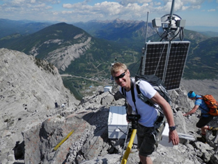 Lars Harald Blikra på toppen av Frank slide i Alberta, Canada.