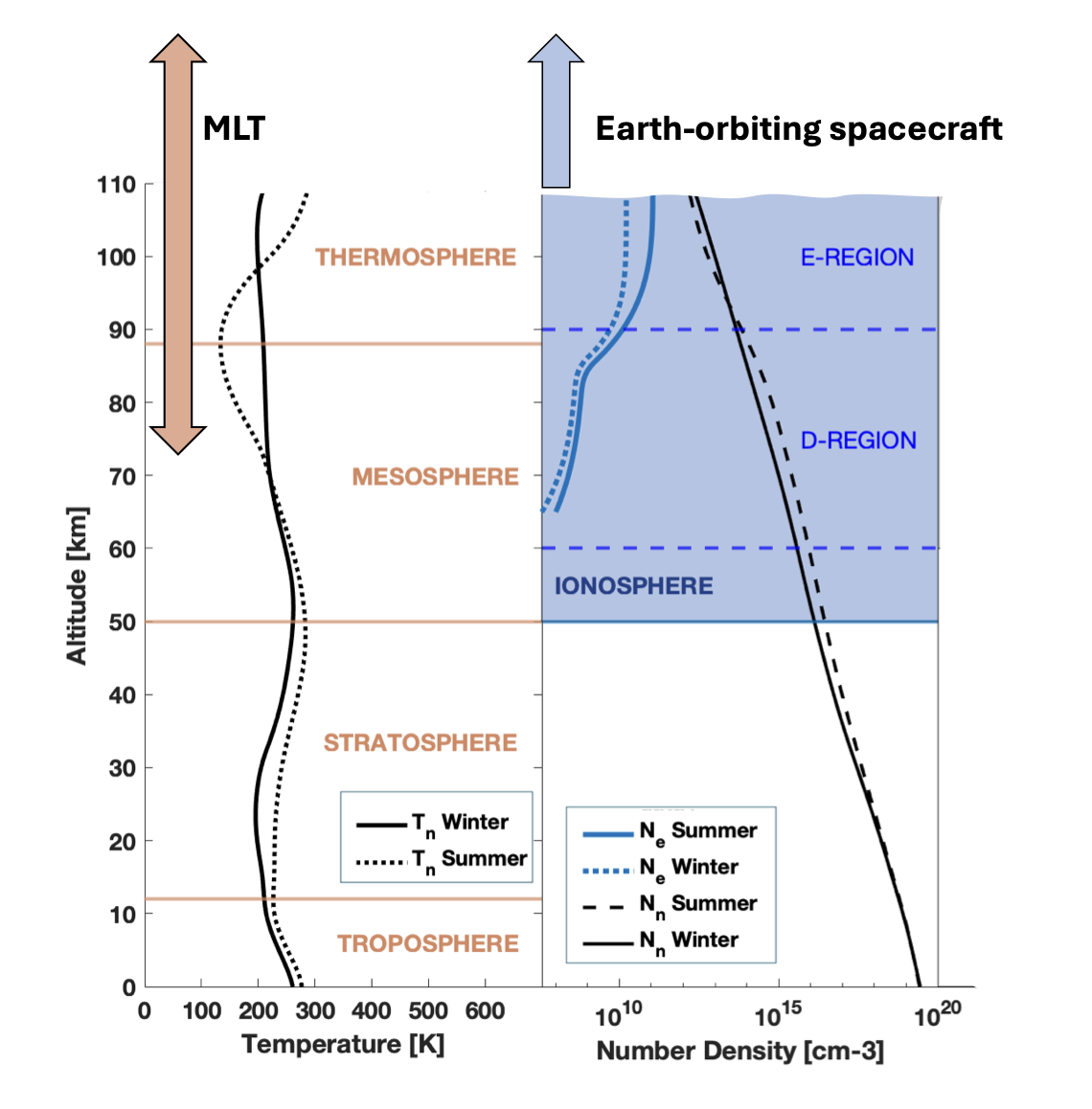 Earth's mesosphere ranges from an altitude of approximately 50 km, culminating in a temperature minimum at altitudes between 80 km and 90 km, known as the mesopause, which marks the boundary between the mesosphere and the thermosphere. The temperature minimum became especially low during the summer in high latitudes, even reaching 100 K due to gravity waves in some rare cases, while the temperature in winter is generally warmer than that in summer, typically above 200 K. The thermal structure of the upper mesosphere is highly complex, with variations in the short time to long-term scales of phenomena. The meridional circulation is believed to be the main reason that summer mesopause is cooler and winter mesopause is warmer.