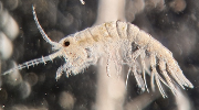 To catch zooplankton in the water column from 50 meters up to the surface, we use a WP-2 net with a mesh size of 90 µm. So, what do we catch in the net? Not fish—much to the disappointment of our bear guard, Einar—but instead, lots of tiny crustaceans just a few millimeters long! Among them are copepods—sometimes referred to as "the cows of the sea"—which are tiny but essential grazers of microalgae in the Arctic marine ecosystem. We caught several species of copepods in various sizes and developmental stages, as well as some amphipods, "the tigers of the sea" (arrow worms), and occasionally a comb jelly called the "sea nut" (Mertensia ovum).