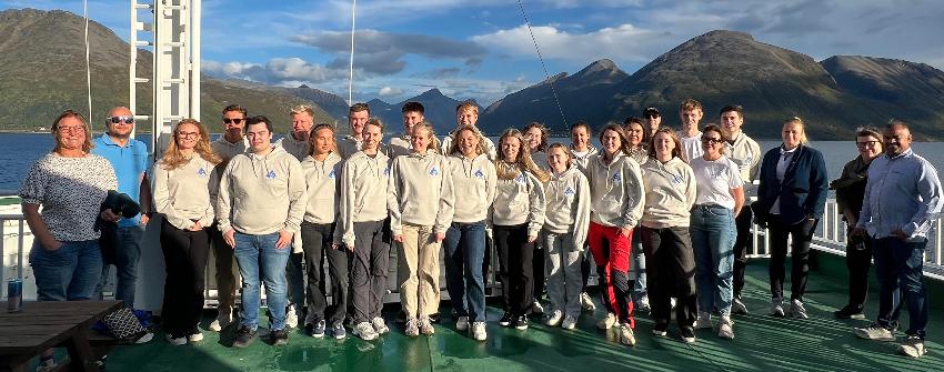 Tjue studenter fra UiT fikk bli godt kjent med sjømatkommunen Skjervøy da Sjømatløftet i nord arrangerte studentdager og innovasjonscamp med Ungt Entreprenørskap 3. - 6. september 2024. Studentene og ansatte fra UiT besøkte også Arnøylaks, MOWI Sandøra og Lerøy sitt slakteri, før de deltok på Sjømatkonferansen i Nord-Troms. Les mer her.
