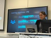 Karolinska Institutet, Linköpings universitet, Dalhousie University og Universitetet i Bergen/HVL (TVEPS) er kommet langt med sine program for tverrprofesjonell samarbeidslæring. Vi fikk innsikt i spennende og imponerende læringsaktiviteter og vurderingsformer. Det var også inspirerende å høre om HEL-0700 fra UiT Norges arktiske universitet (helsefak), et felles emne for førsteårsstudenter danner et godt utgangspunkt og grunnlag for kompetanseutvikling innen tverrprofesjonell samhandling. Eksempler på TPS fra helsehuset, farmasi og medisin ble delt med innlevelse og høyt engasjement. Den første økta ble avsluttet med gode diskusjoner og refleksjoner om likhetstrekk mellom TPS i de ulike institusjonene og potensialet for videre utvikling. Flere ansatte fra studieprogram og helsetjenestene uttrykte at de ble veldig motivert og inspirert til å ta fatt på videre utvikling av tverrprofesjonell samarbeidslæring i eget fagmiljø. Flere av deltakerne tok også opp et ønske om å få på plass større inkludering av studenter og pasienter i planlegging av TPS.