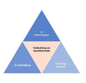 1) Informasjonsarbeid – rettet mot nyutdannede, veiledere, ledere og eiere i skole og barnehage. Informasjonsarbeidet retter seg også mot avgangsstudenter som snart er ferdig med lærerutdanningen.