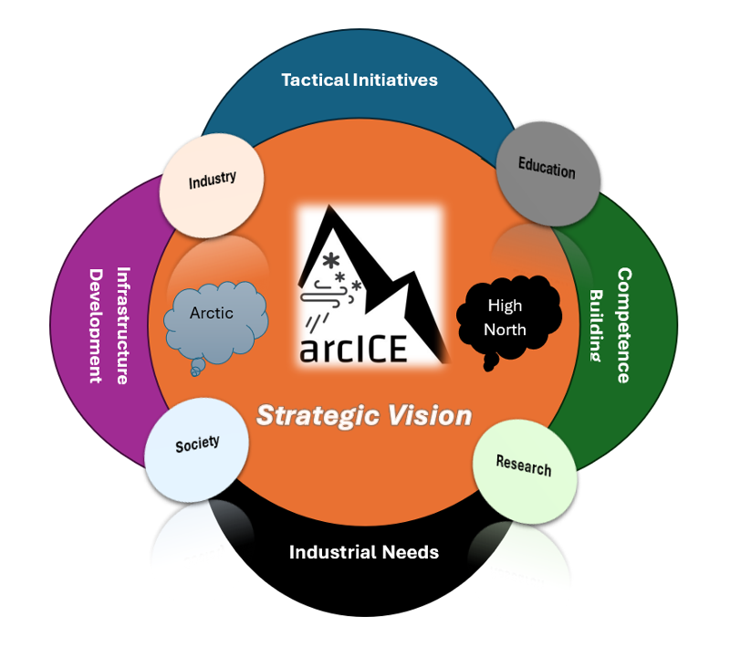 Inspired by the emerging challenges faced by the industry in cold regions, arcICE research focus on designing innovative technologies and engineering solutions to optimally combat atmospheric icing on structures in the Arctic and High North regions. arcICE aims to make transformative scientific innovations across multidisciplinary areas such as ice accretion physics, ice detection, ice mitigation and resilience/preparedness for managing ice disaster events. Such innovations can help to improve structural design, sustainability and industrial operations in cold regions. arcICE research engages postdoctoral scientists and young graduate students in the leading-edge research, helping to inform and inspire the next generation of research leaders in industry and academia. arcICE actively pursue productive collaborations with academic and industrial scientists in Norway and around the globe. Thus, committed to delivering advanced atmospheric icing and cold climate related research built on sustainable collaboration.