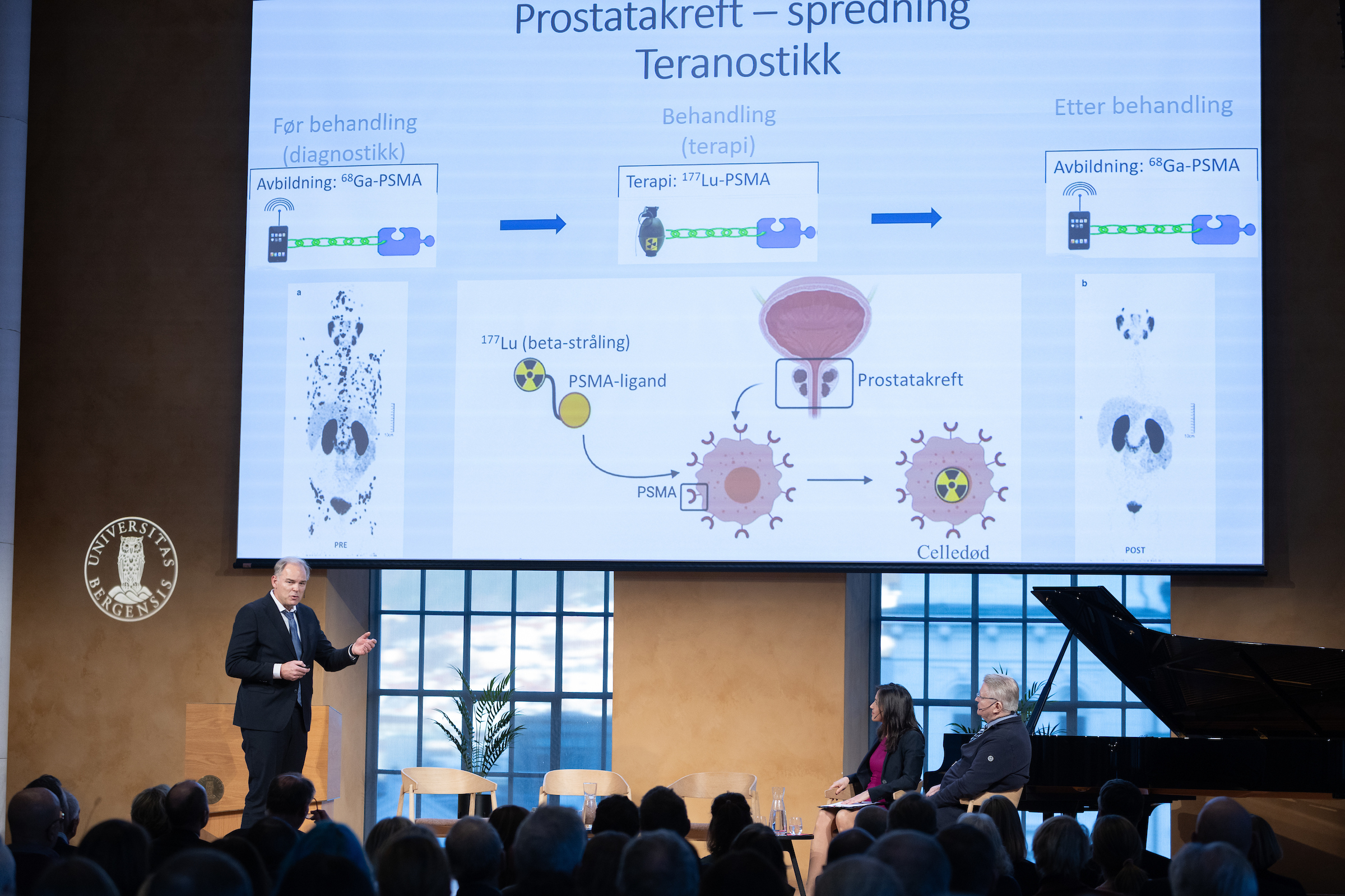 Towards the collaborative goals, the Bergen project focuses on the development of radioactive tracers, Tromsø on preclinical testing, and Trondheim on clinical trials. A close cooperation network in the fields of tracer development, pharmacology, chemistry, (radiation) oncology, (radiation) biology, nuclear medicine, immunology, drug development and machine learning are established. State-of-the-art imaging diagnostic equipment is also funded by private gifts from Trond Mohn to the University Hospitals in the three cities. This allows method and routine transfer between institutions, and that the projects can reinforce each other with knowledge and data from their focus fields.