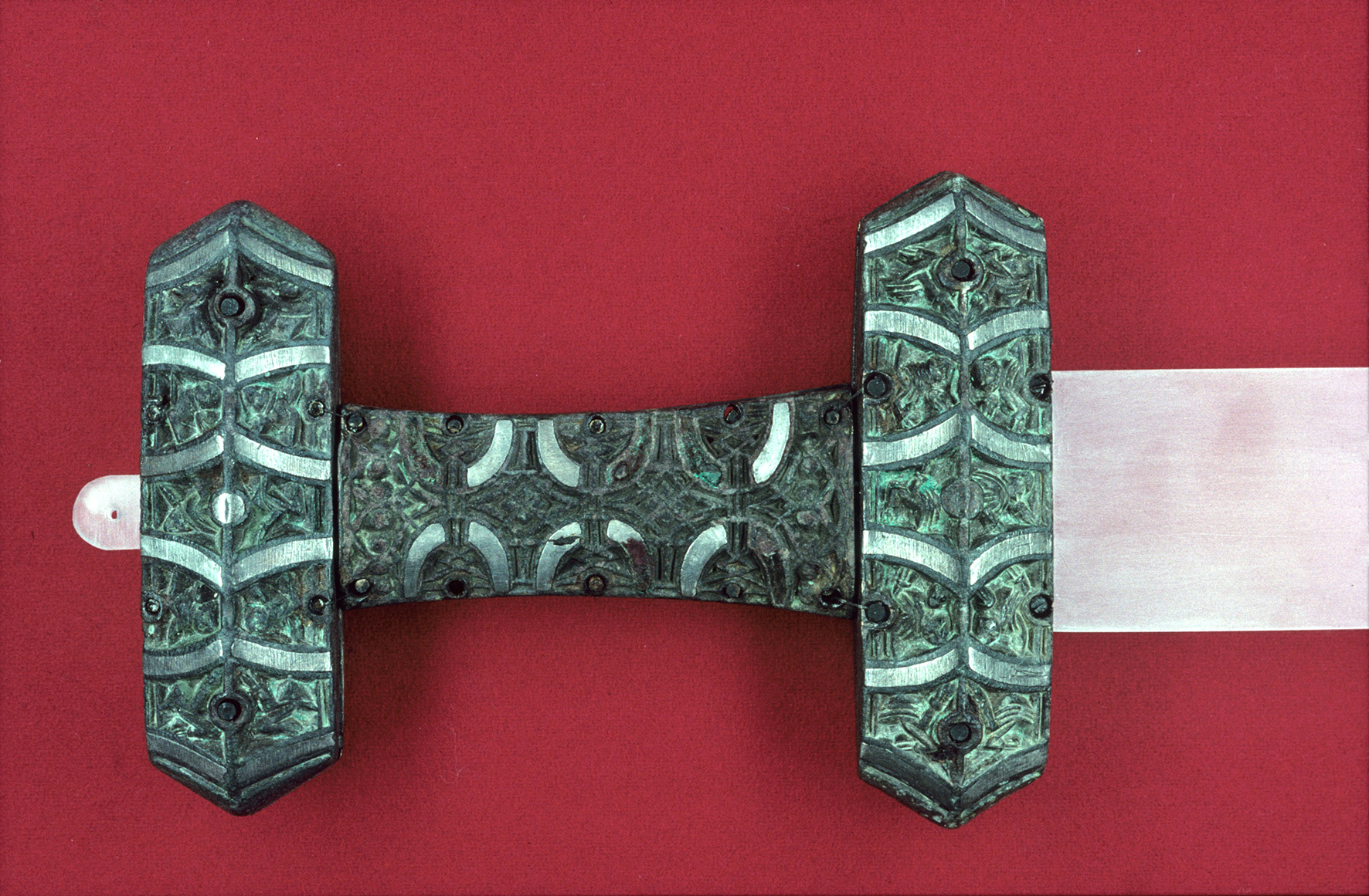 Sverdhjalt av bronse med sølvinnlegning fra Eltoft på Vestvågøy i Lofoten (ts5642). Foto: Olga Kvalheim, TMUSverdet var ikke bare et våpen, det signaliserte mannens identitet, hans sosiale status og det var et svært synlig symbol på hans maktposisjon og kraft.Noen av de mest praktfulle sverdene skal ha vært smidd med trolldomskraft av dverger og slike sverd hadde magiske egenskaper.