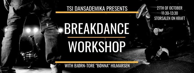 TSI Dansademika inviterer deg til BREAKDANCE WORKSHOP med den fantastiske instruktøren Bjørn-Tore Hilmarsen aka BØNNA.