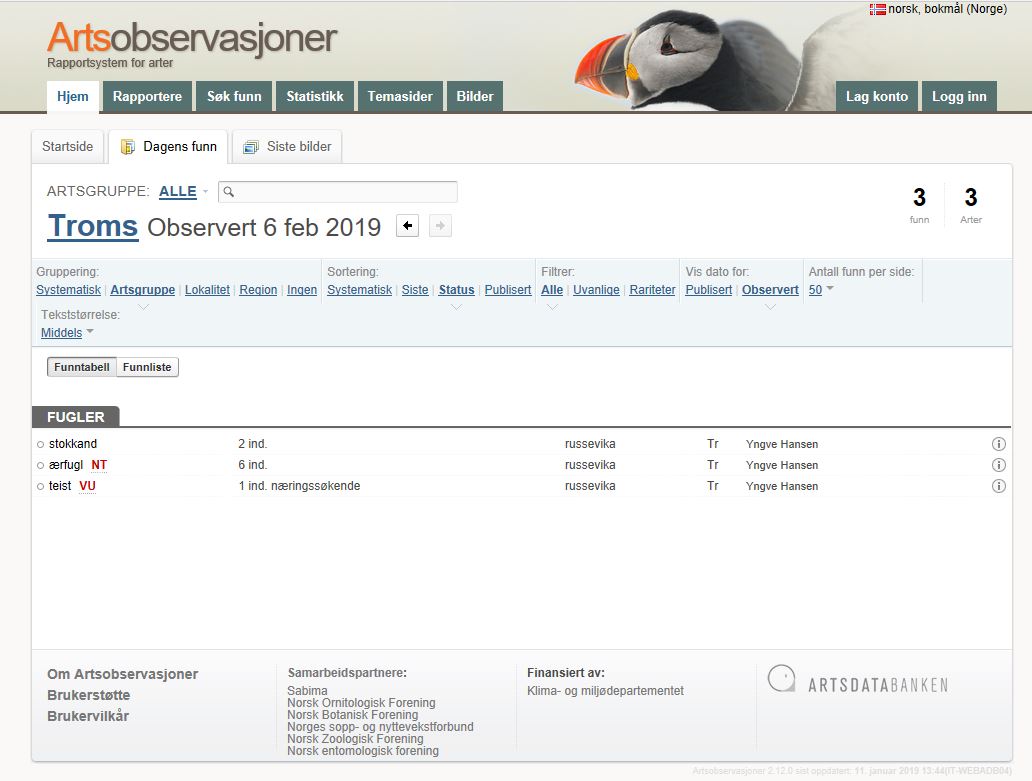 Norges ornitologiske forening Tromsø lokallag inviterer til presentasjon av artdatabankens verktøy for registrering av fugleobservasjoner.