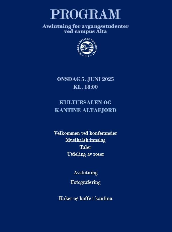Welcome to the graduation ceremony for our students at the UiT campus Alta!