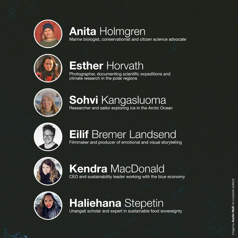 We’re thrilled to have an excellent line-up of speakers who’ve carved their own unique paths in the ocean space - from research to artistic pursuits, marine management to sailing. They will share some of their different approaches and concrete actions in reaction to the rapidly changing Arctic and ocean environments through presentations and an interactive panel discussion. Success comes from a wide range of skill sets, and our speakers demonstrate that you do not need to fit a specific mold to succeed, and instead can shape your life and career around what matters to you most - the things that put the wind in your sails.