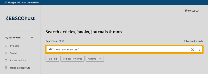 The search we have now conducted is one where we have only used controlled search keywords for each main element from the project title. In an ideal world, this would be sufficient, but in the practical world, you can improve the search by also using some free search keywords in what we call a text word search. Indexing, or "tagging," of articles with controlled search keywords, such as MeSH terms, takes time. Therefore, there may be delays of several months, or longer. Additionally, those who index can make small errors. Therefore, it is always advisable to build a literature search that also includes one or more free search keywords, in addition to the controlled search keywords.