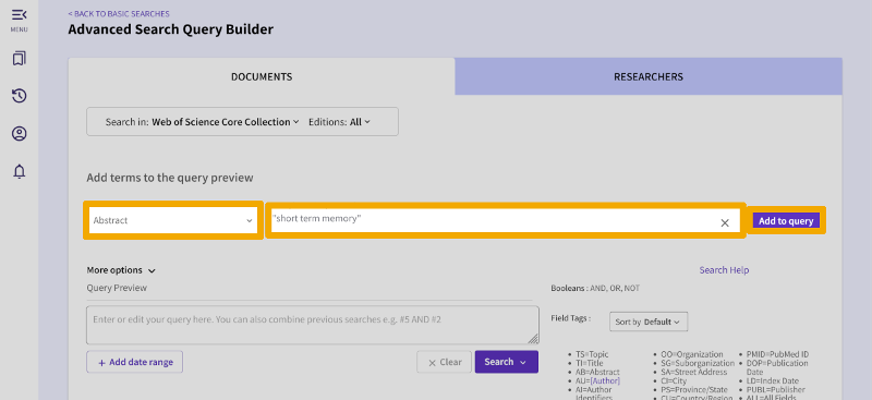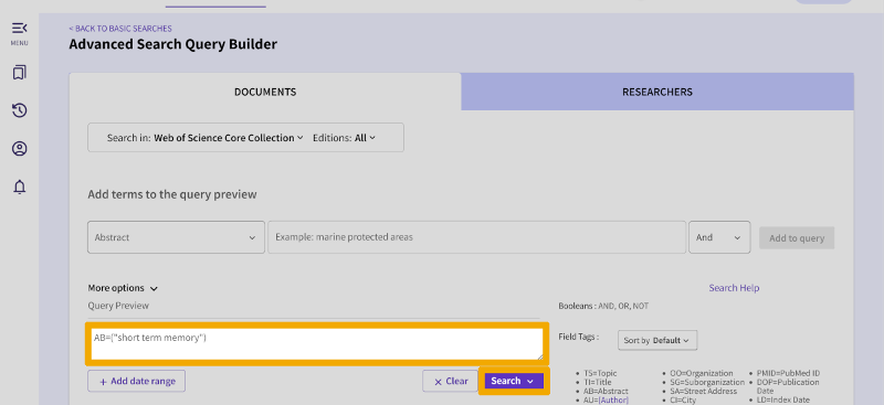 Then we click on ‘ADD’, and place this search keyword in the ‘Query Box’. Then we click on ‘Add to History’.